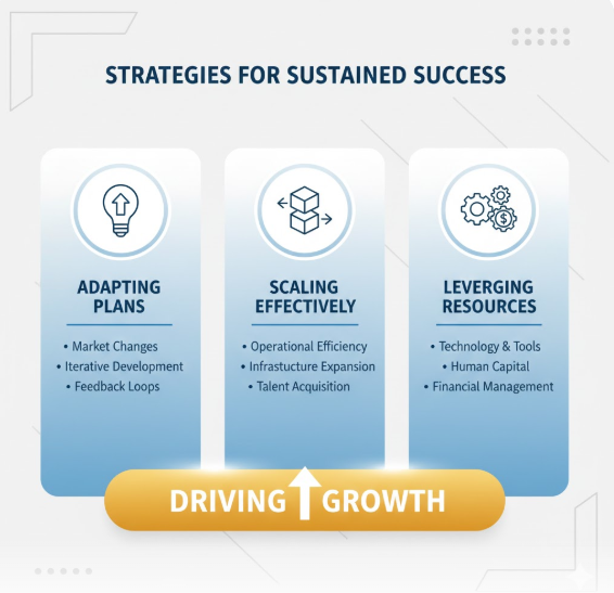 Beyond securing funds, you need strategies that drive growth. Adapting plans, scaling effectively, and leveraging resources are key components of sustained success.